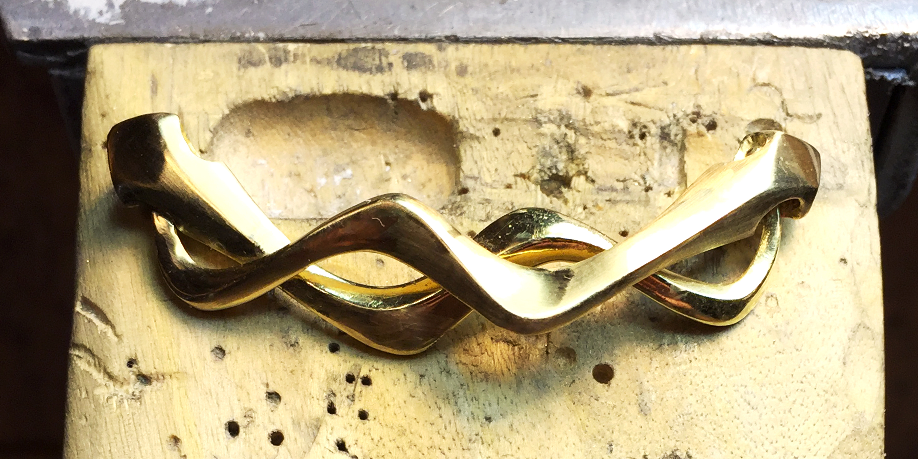 在那幾年,我習慣在工作室待到很晚很晚,凌晨後路燈的燈光很亮,外面冷冷的天氣讓空氣顯得很安靜,只有我在工作室拿著工具敲擊金屬的聲音,還有一種時間被拉長的感受;冰冷的金屬,帶著重量與阻力,但在火的淬煉與敲擊後,肉眼看不見的粒子悄悄地變化,反覆的撞擊敲打使得它慢慢變得柔軟精煉。